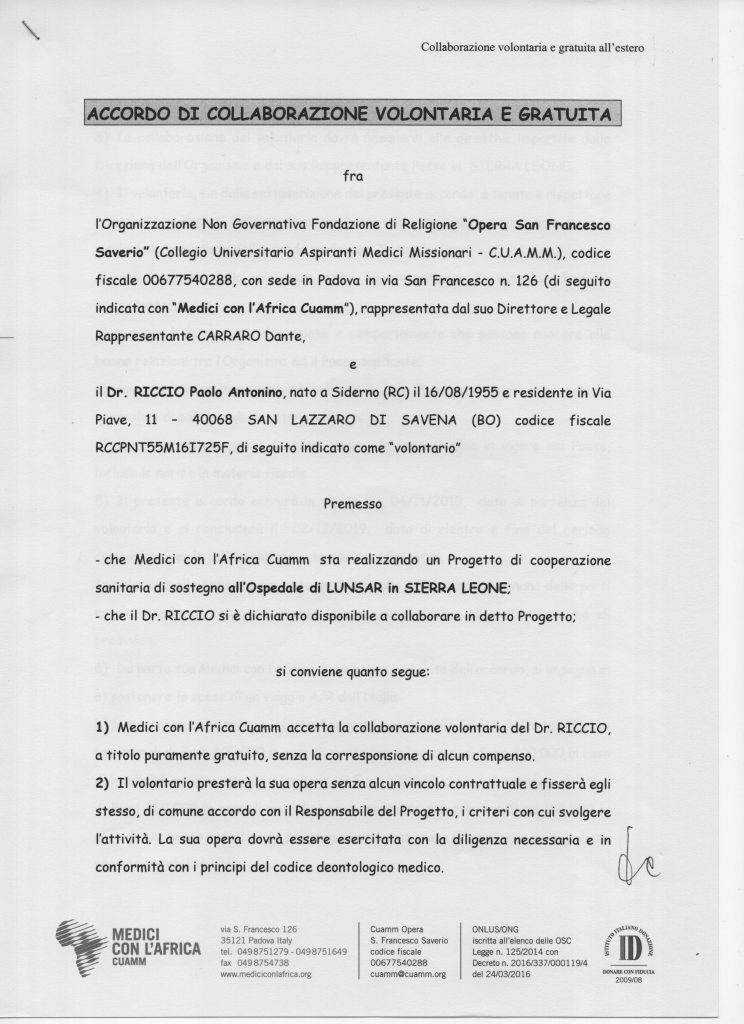 La missione si è svolta nel mese di novembre presso l’ospedale San Giovanni di Dio a Lunsar dove ho collaborato col reparto di ostetricia e ginecologia ( gestito economicamente e con risorse umane dal Cuamm) eseguendo interventi di asportazione di tumori uterini e ovarici e parti cesarei. Al chirurgo generale in Africa è richiesta anche la competenza in campo ginecologico data la difficoltà di reperire specialisti locali. Non è comunque mancata la possibilità di eseguire interventi di chirurgia generale in elezione e in urgenza.
